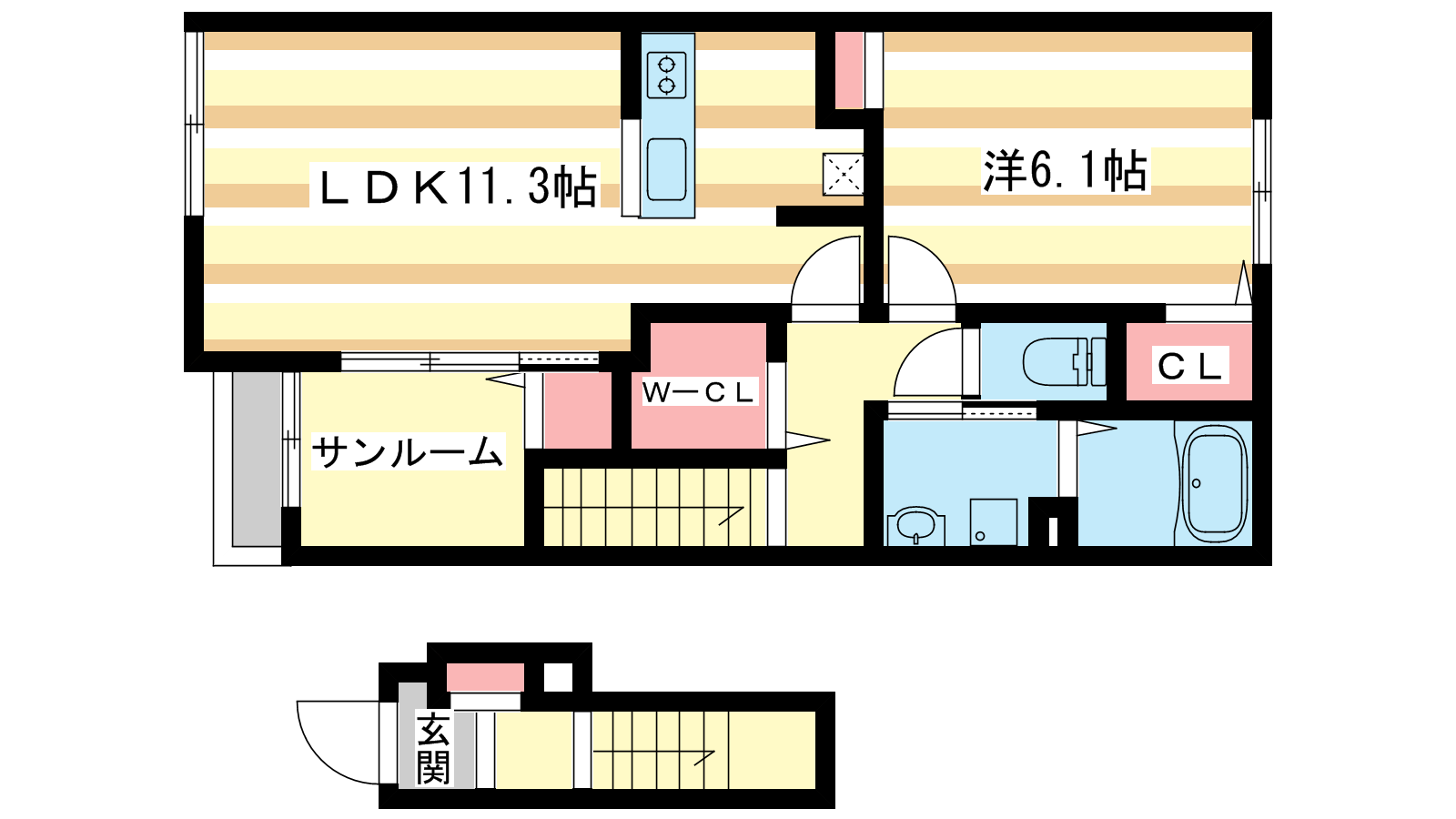 - LDK11.3帖、洋室6.1帖