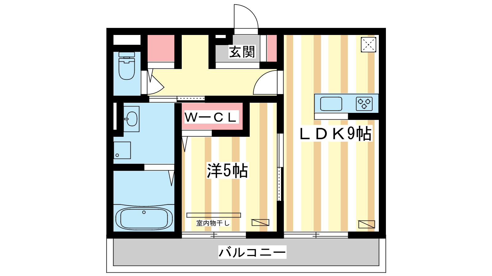 - LDK9帖、洋室5帖