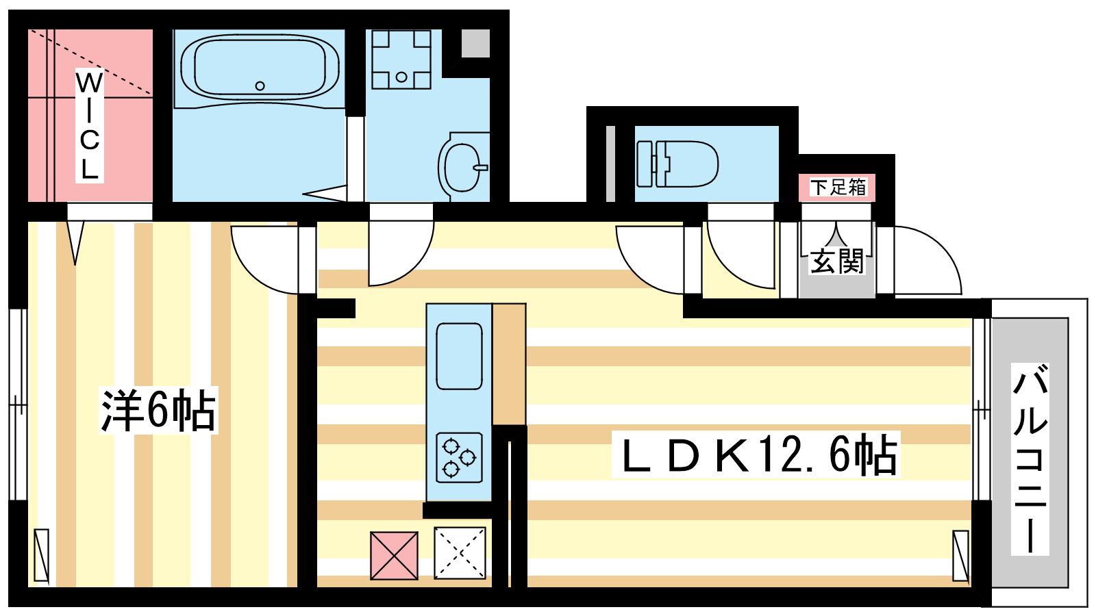 - LDK12.6帖、洋室6帖