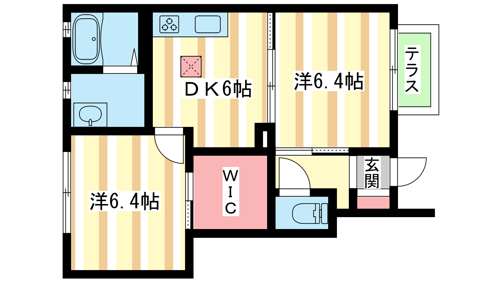 - DK6帖、洋室6.4帖、洋室6.4帖