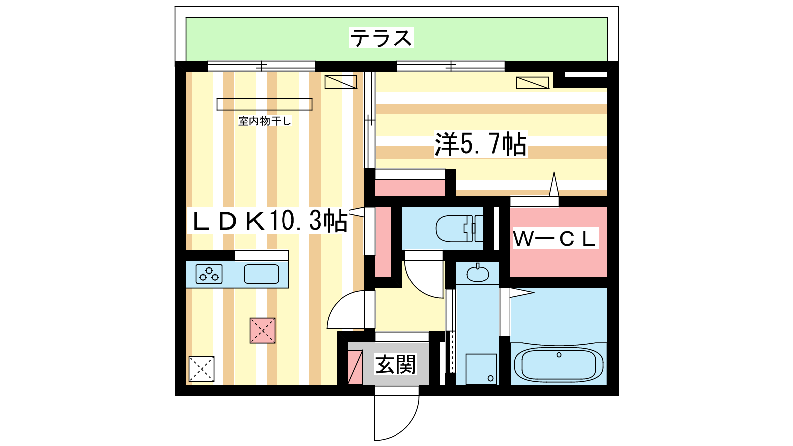 - LDK10.3帖、洋室5.7帖
