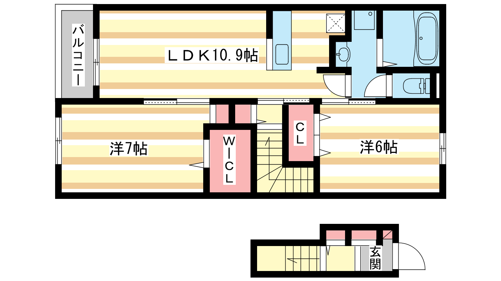 - LDK10.9帖、洋室7帖、洋室6帖