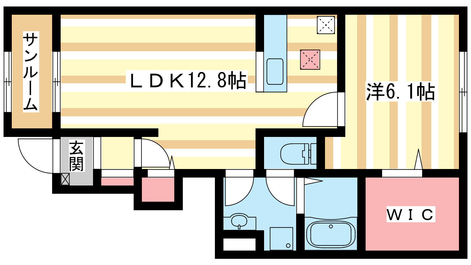 - LDK12.8帖、洋室6.1帖