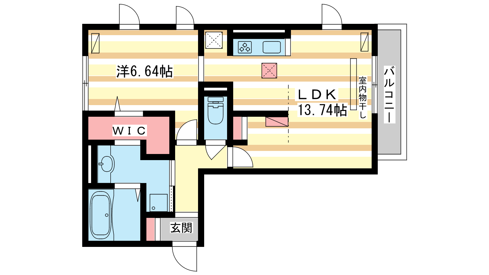 - LDK13.7帖、洋室6.6帖