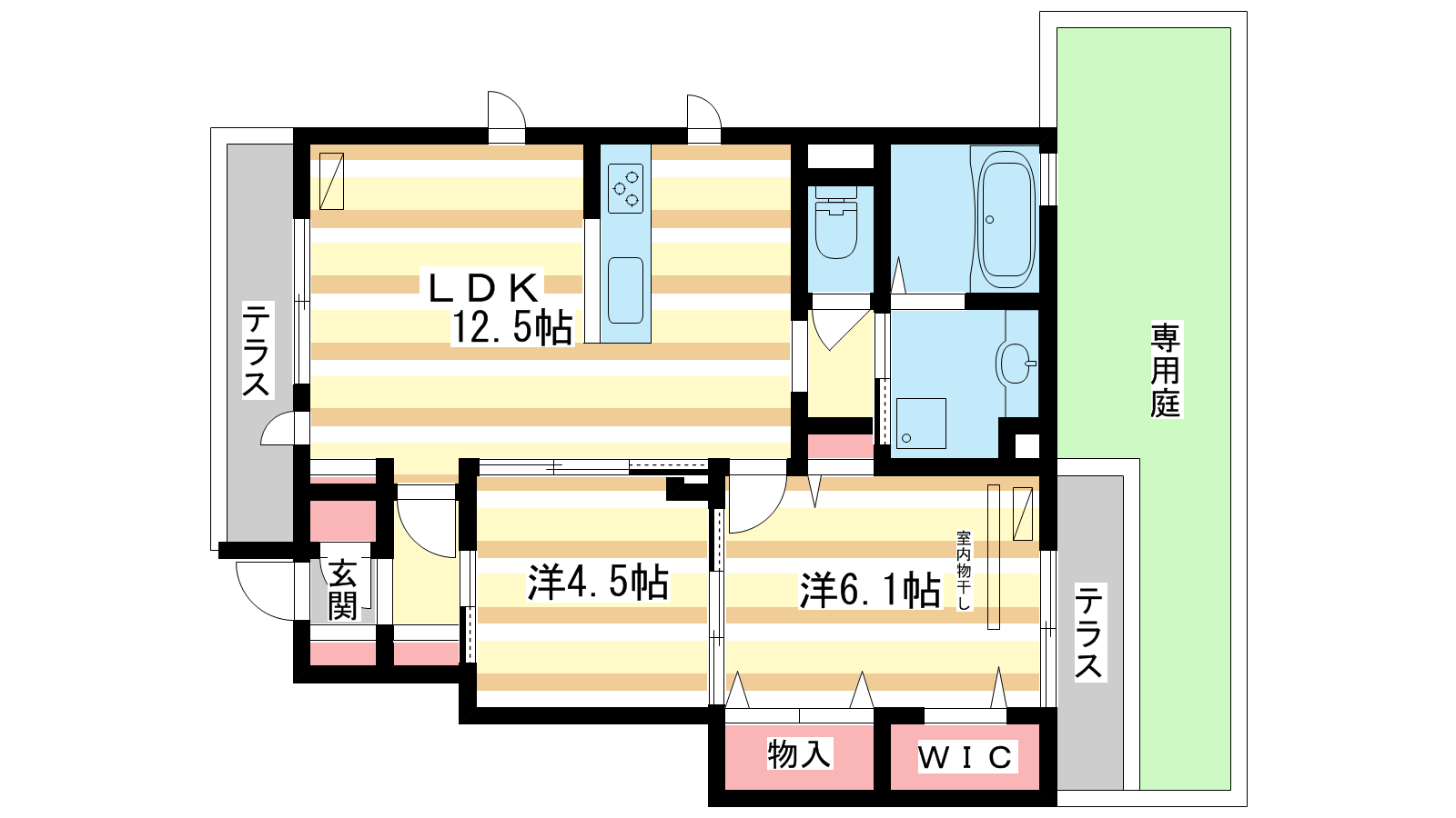 - LDK12.5帖、洋室6.1帖、洋室4.5帖