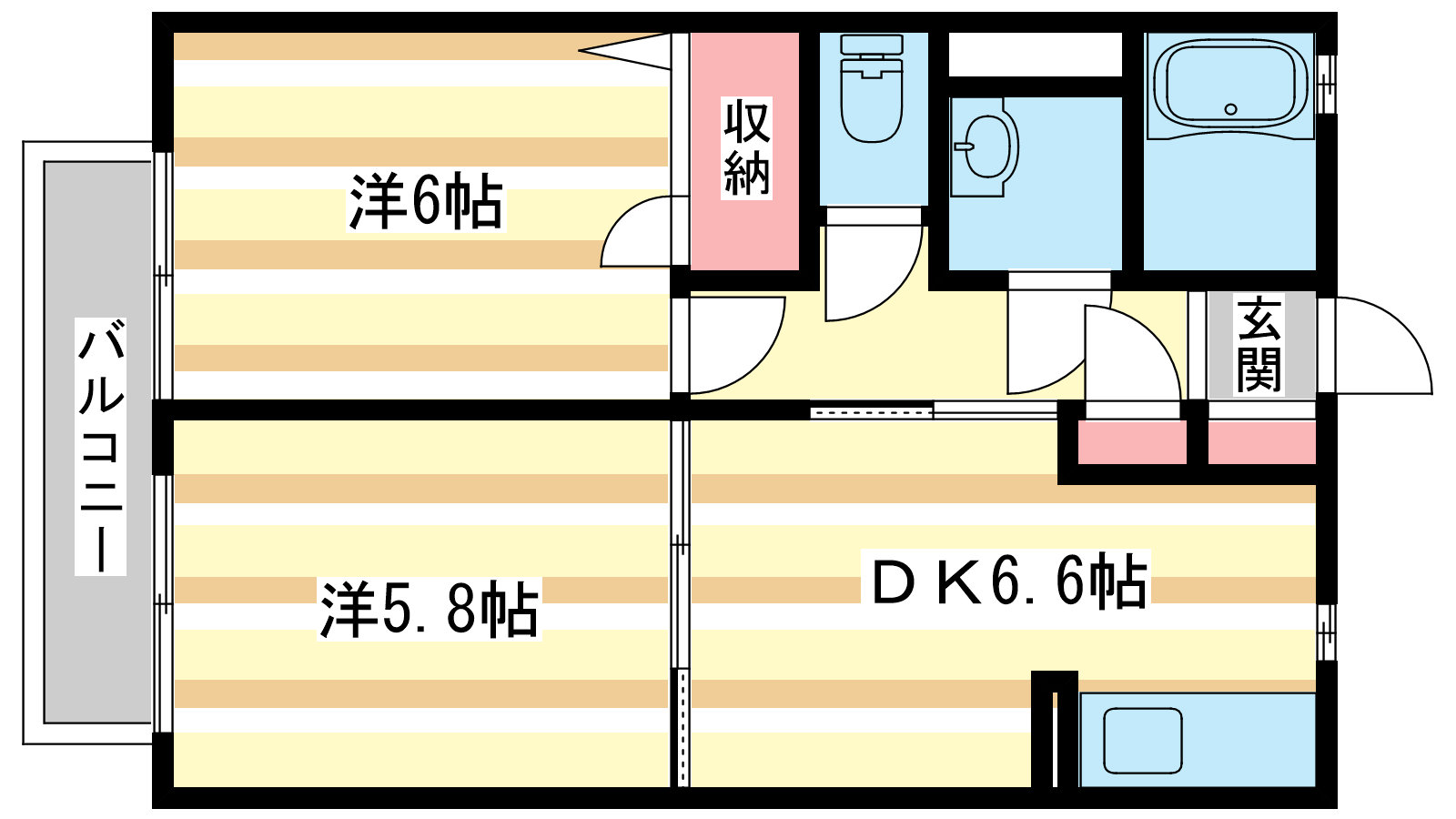 - DK6.6帖、洋室6帖、洋室5.8帖
