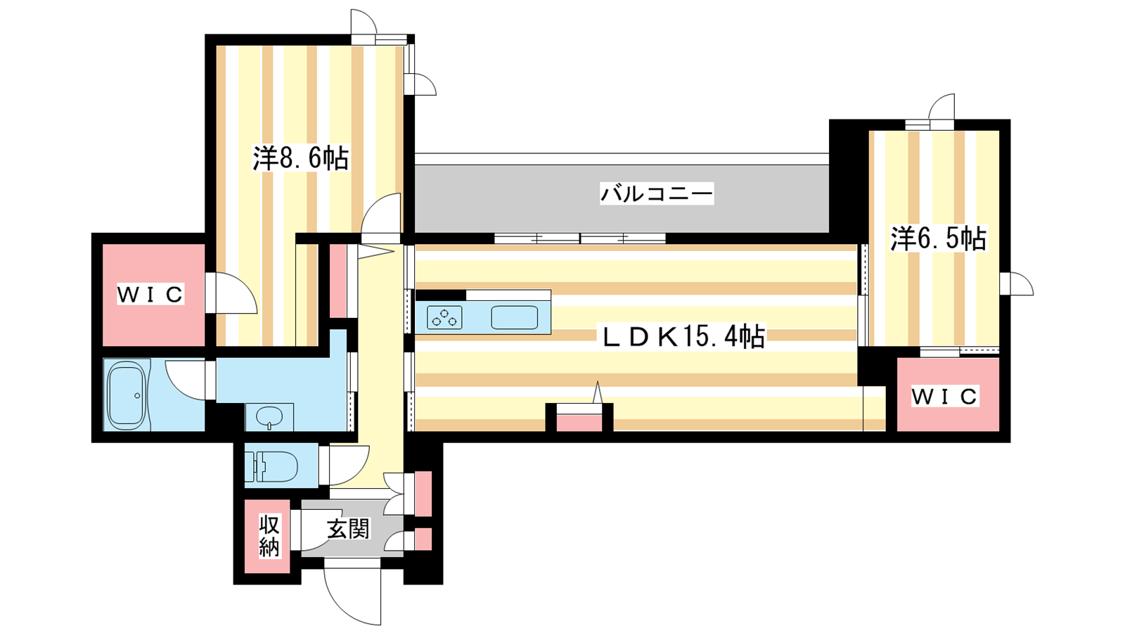 - LDK15.4帖、洋室8.6帖、洋室6.5帖