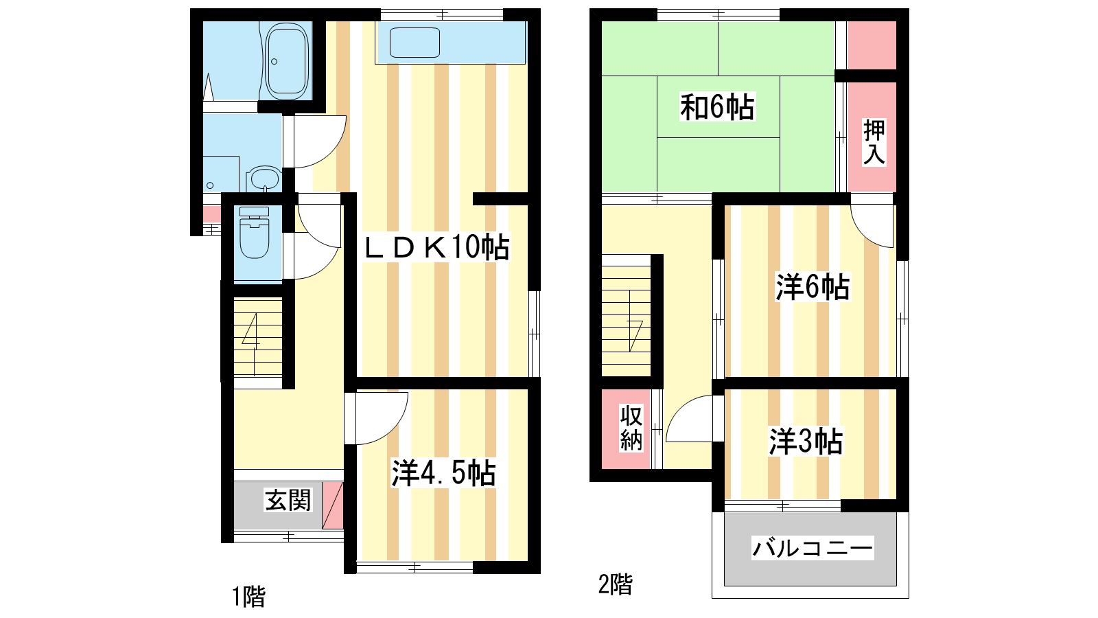 - LDK10帖、和室6帖、洋室4.5帖、洋室4.5帖、和室3帖