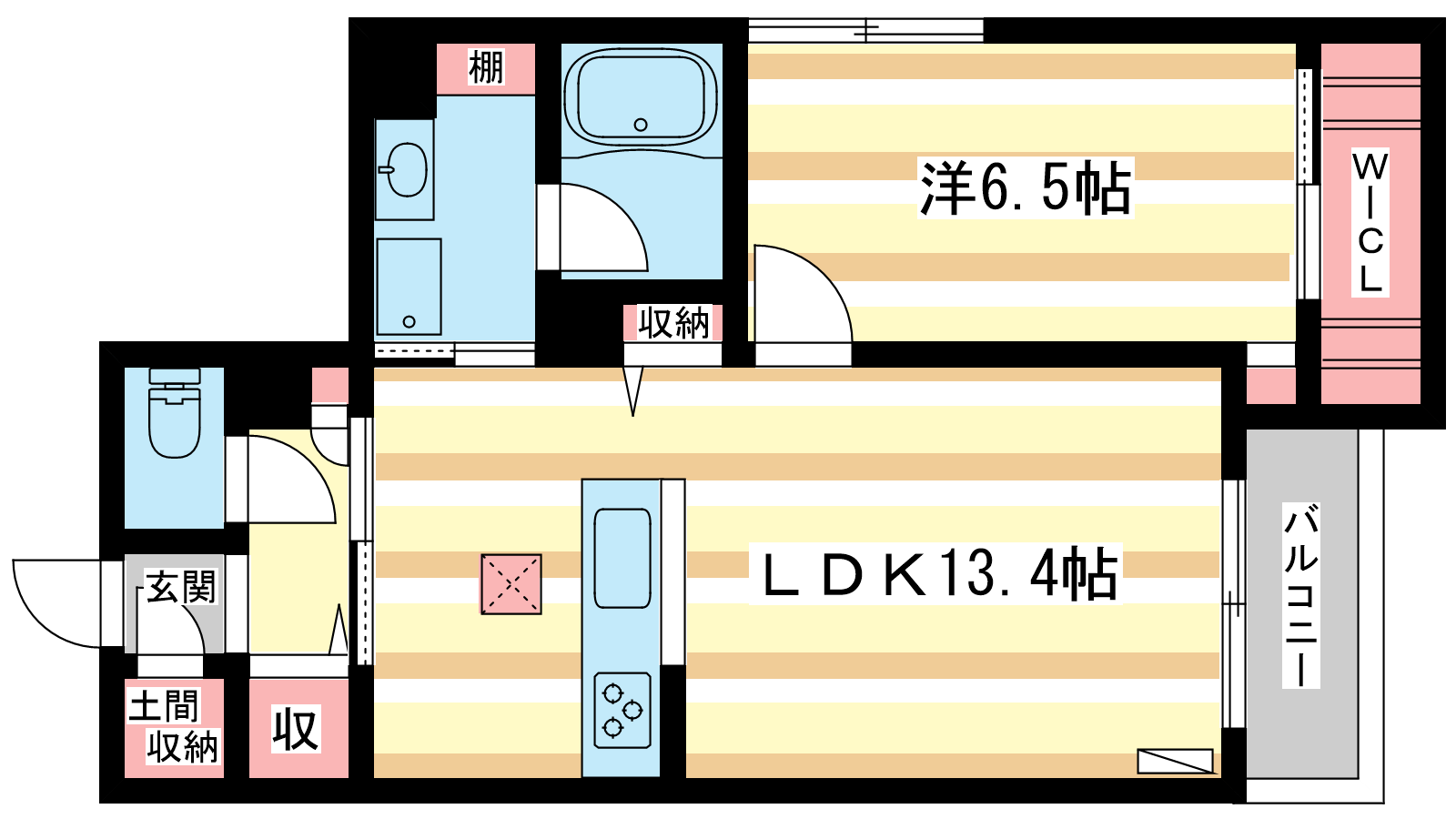 - LDK13.4帖、洋室6.5帖