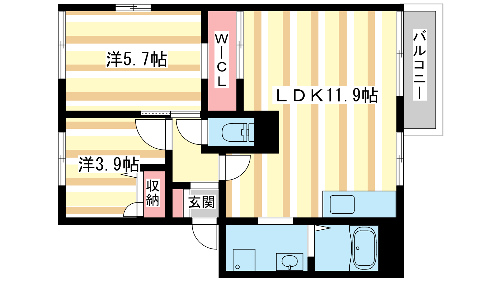- LDK11.9帖、洋室5.7帖、洋室3.9帖