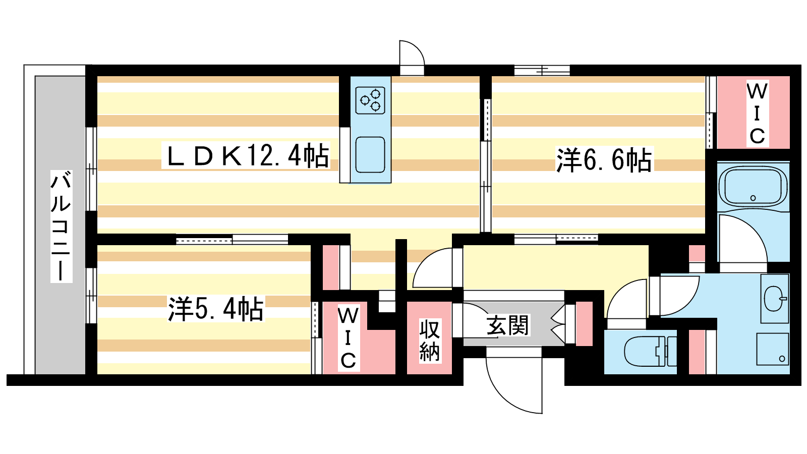 - LDK12.4帖、洋室6.6帖、洋室5.4帖