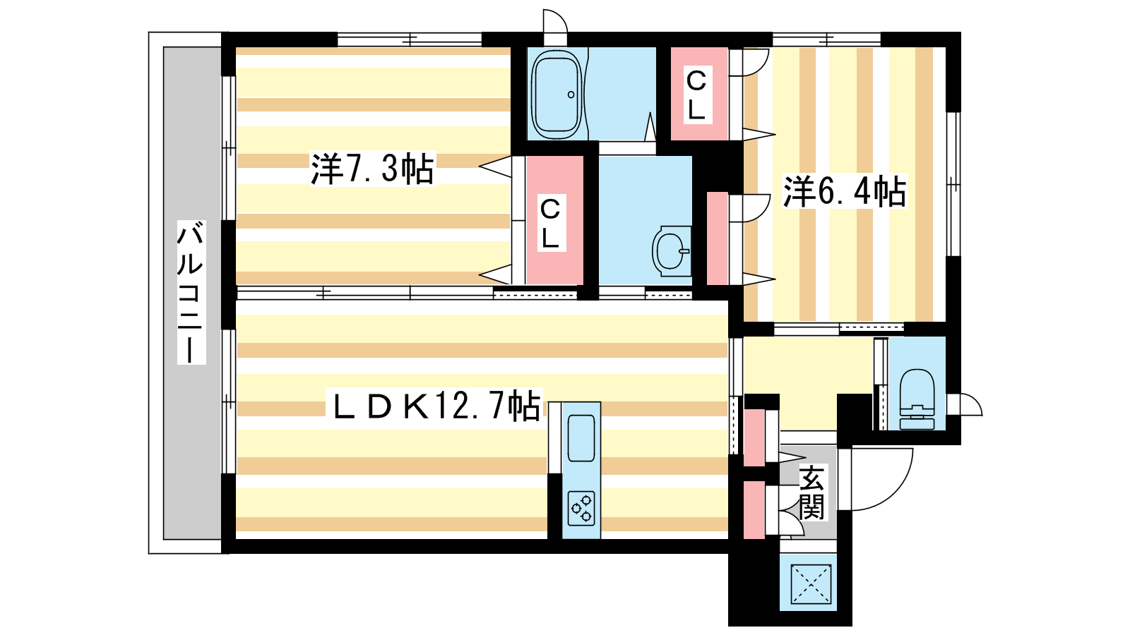- LDK12.7帖、洋室7.3帖、洋室6.4帖