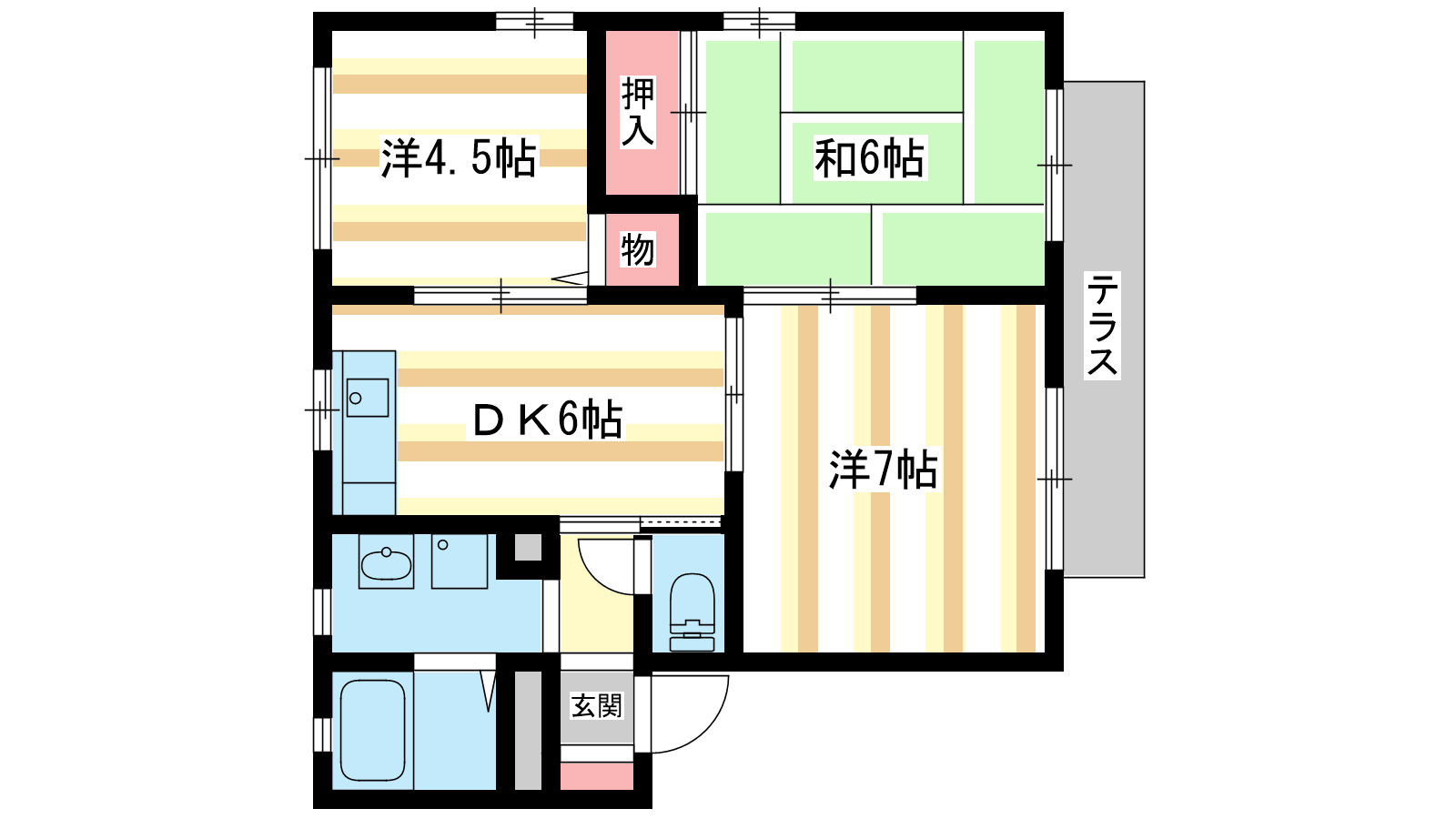 - 洋室7帖、洋室4.5帖、和室6帖、DK6帖