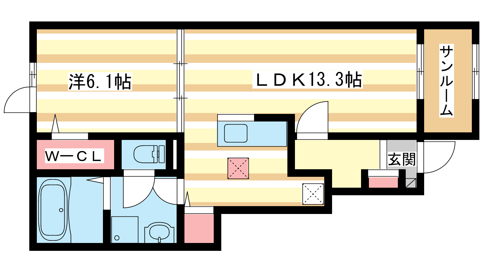 - LDK13.3帖、洋室6.1帖