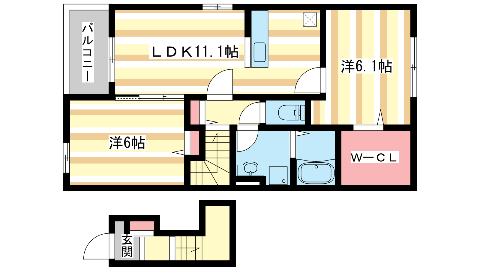 - LDK11.1帖、洋室6.1帖、洋室6帖