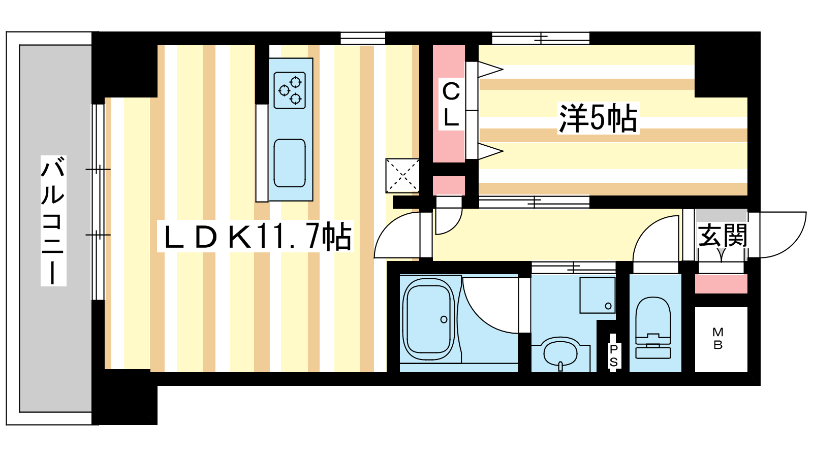 - LDK11.7帖、洋室5帖