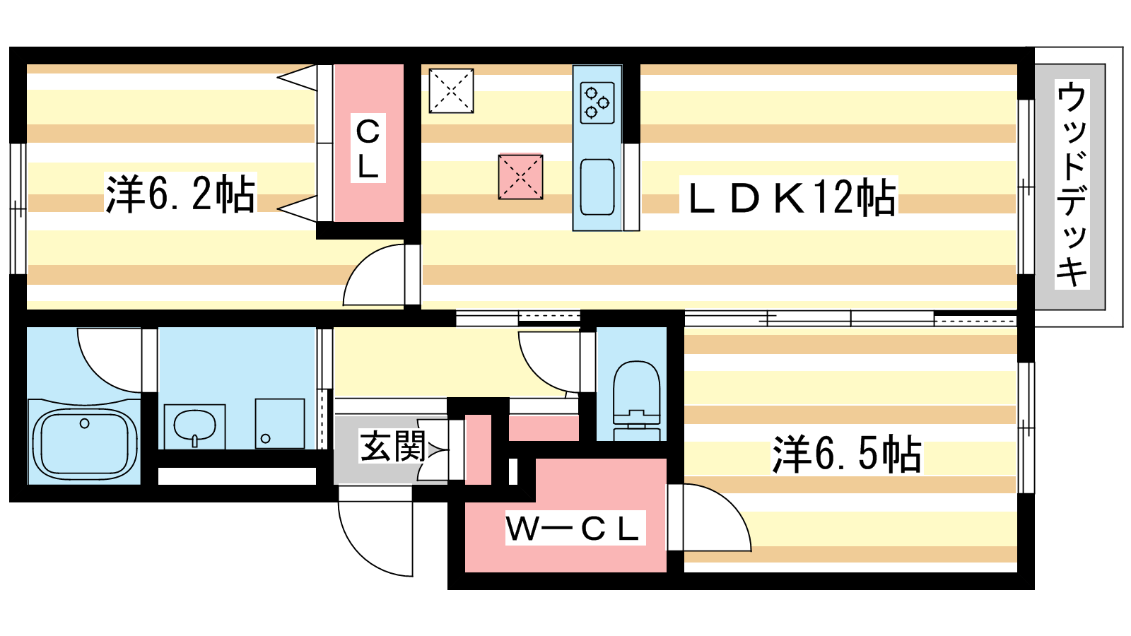 - LDK12帖、洋室6.5帖、洋室6.2帖