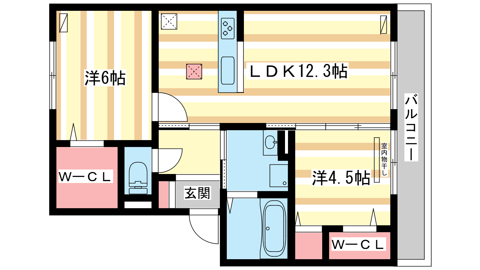 - LDK12.3帖、洋室6帖、洋室4.5帖