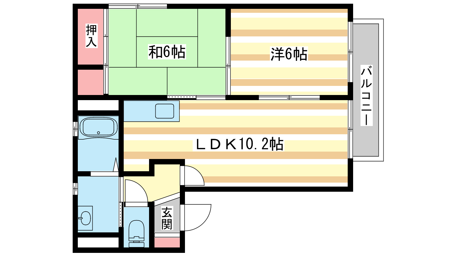 - LDK10.2帖、和室6.1帖、洋室5.9帖