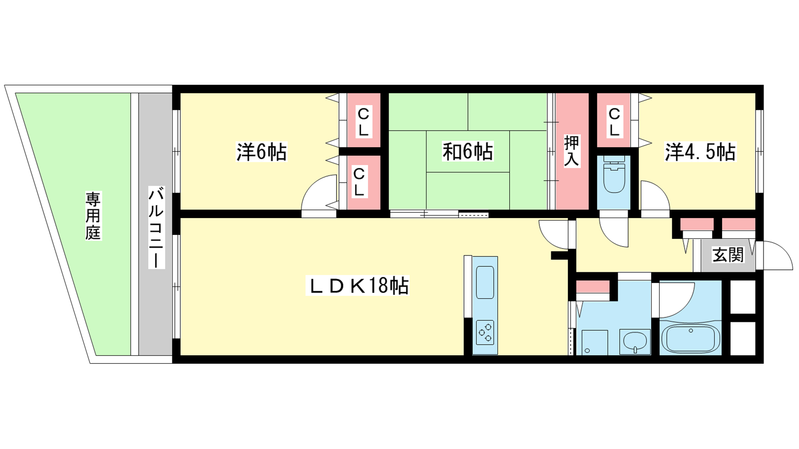 - LDK18帖、和室6帖、洋室6帖、洋室4.5帖