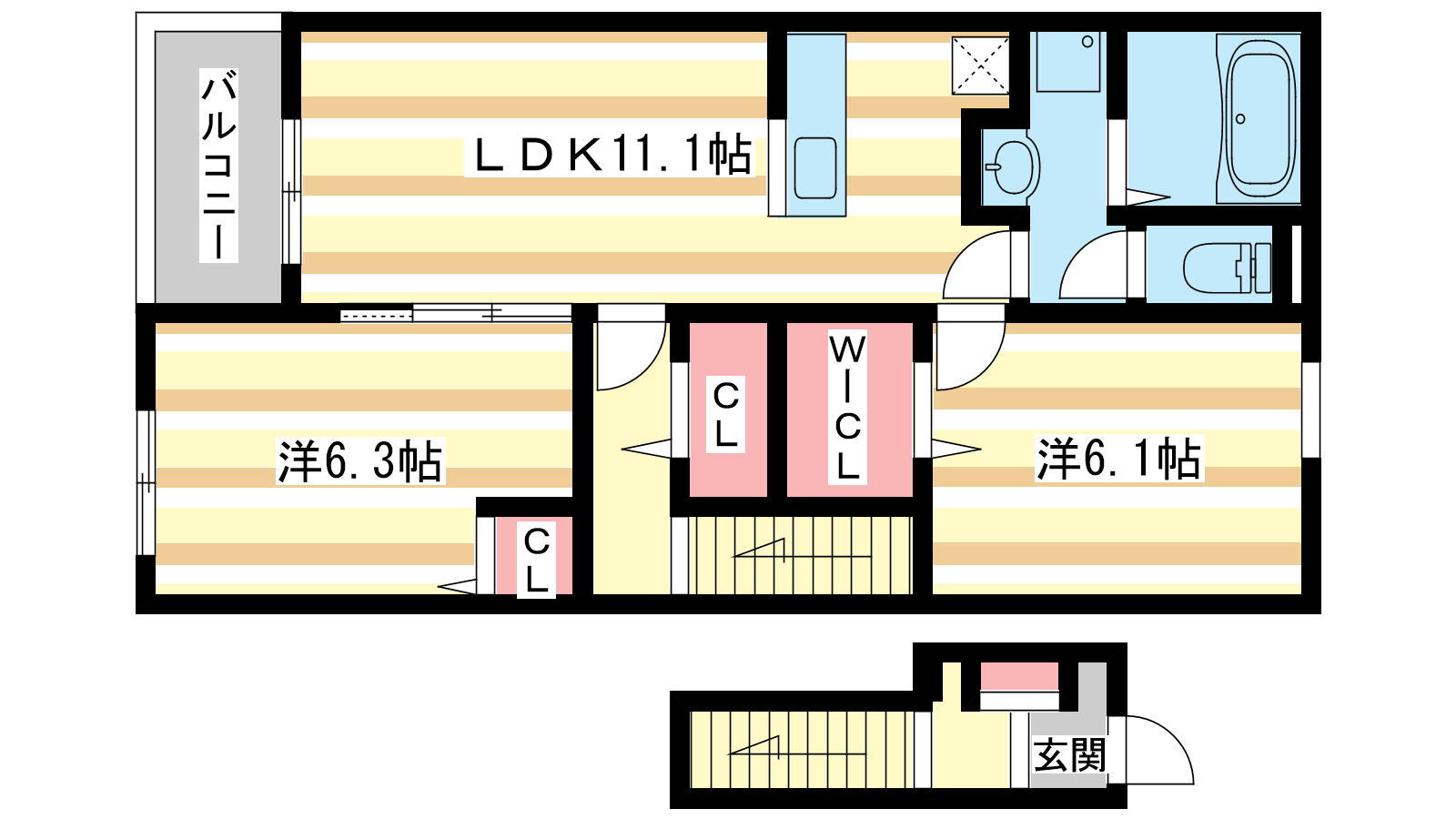 - LDK11.1帖、洋室6.1帖、洋室6.3帖