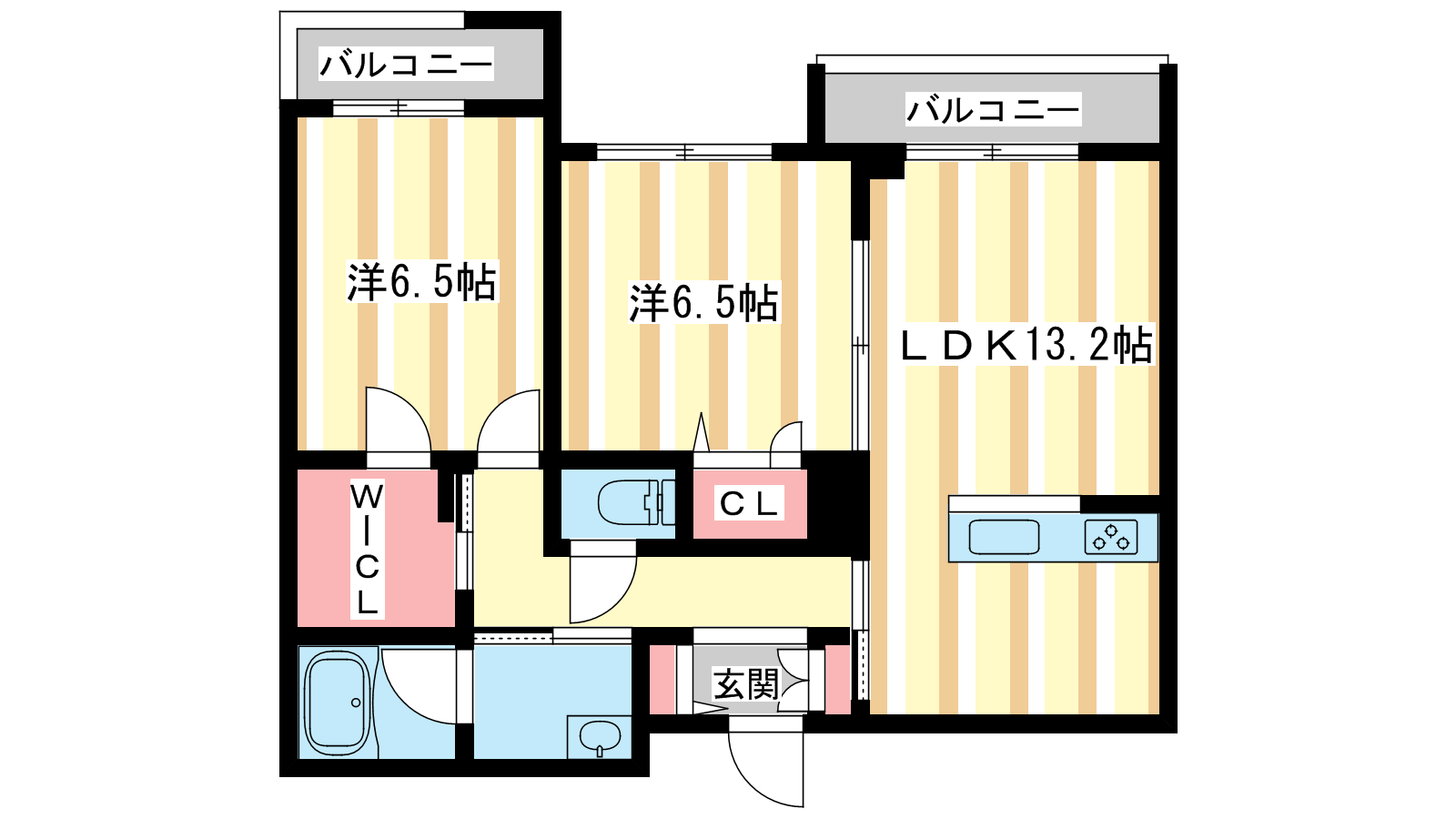 - LDK13.2帖、洋室6.5帖、洋室6.5帖