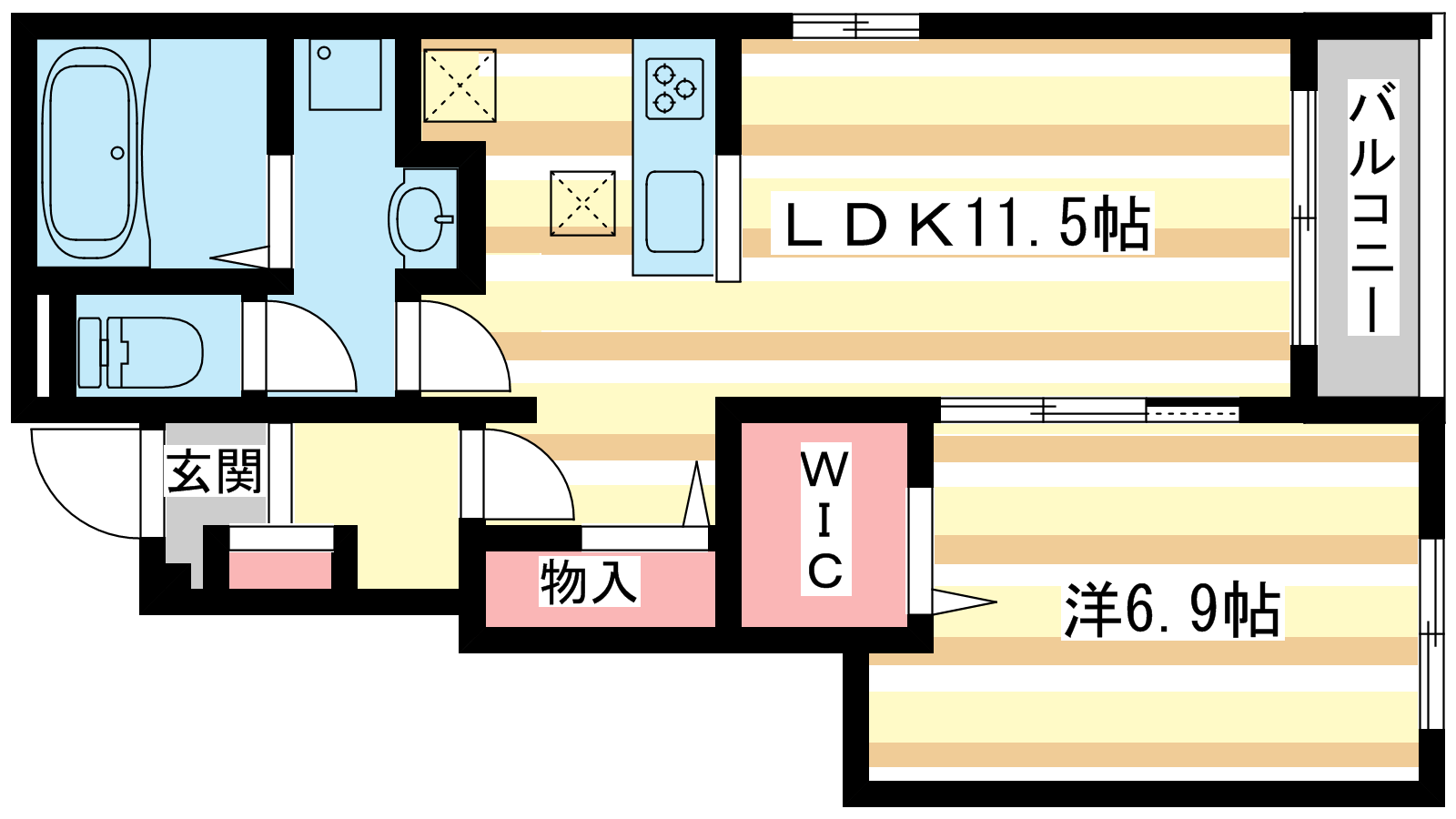 - LDK11.5帖、洋室6.9帖