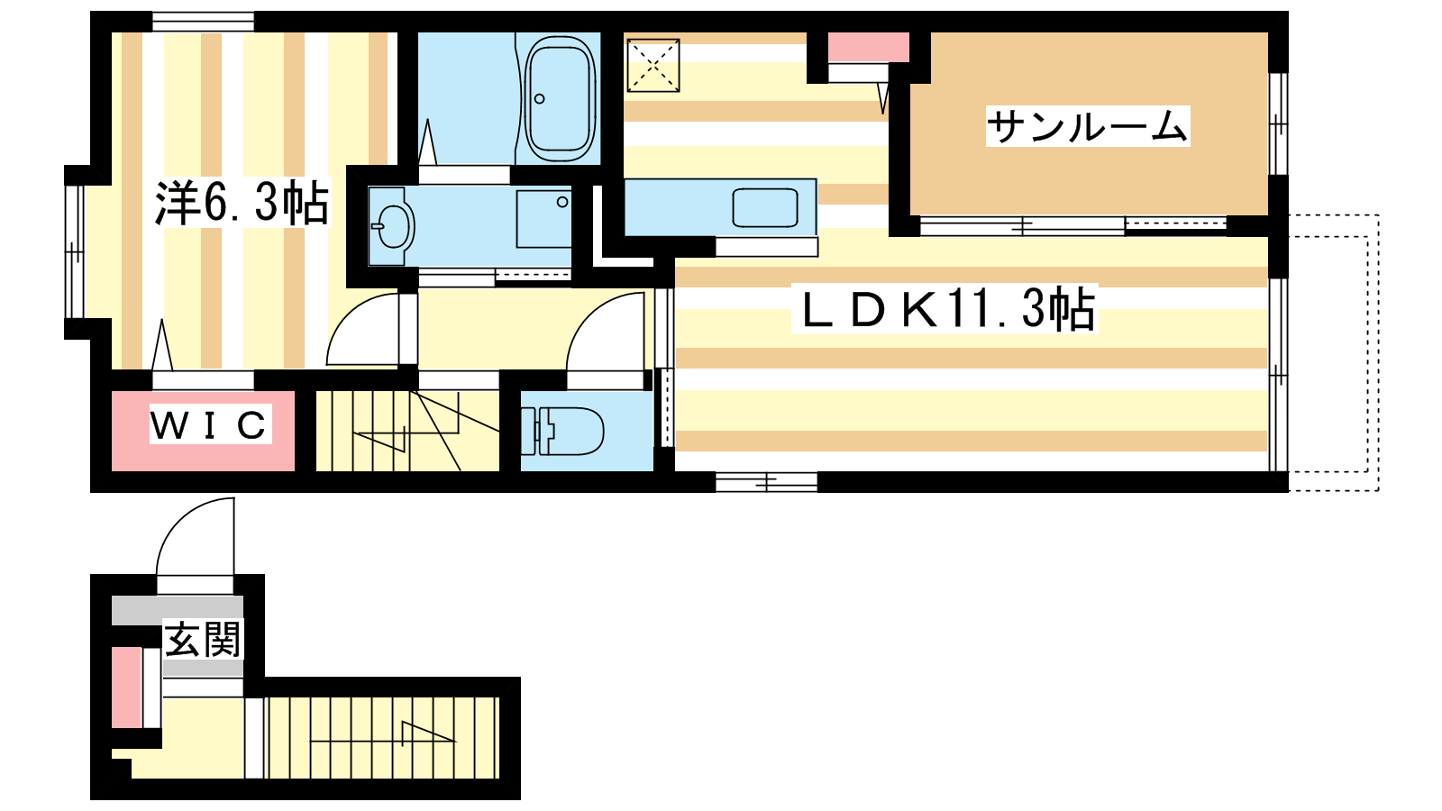 - LDK11.3帖、洋室6.3帖