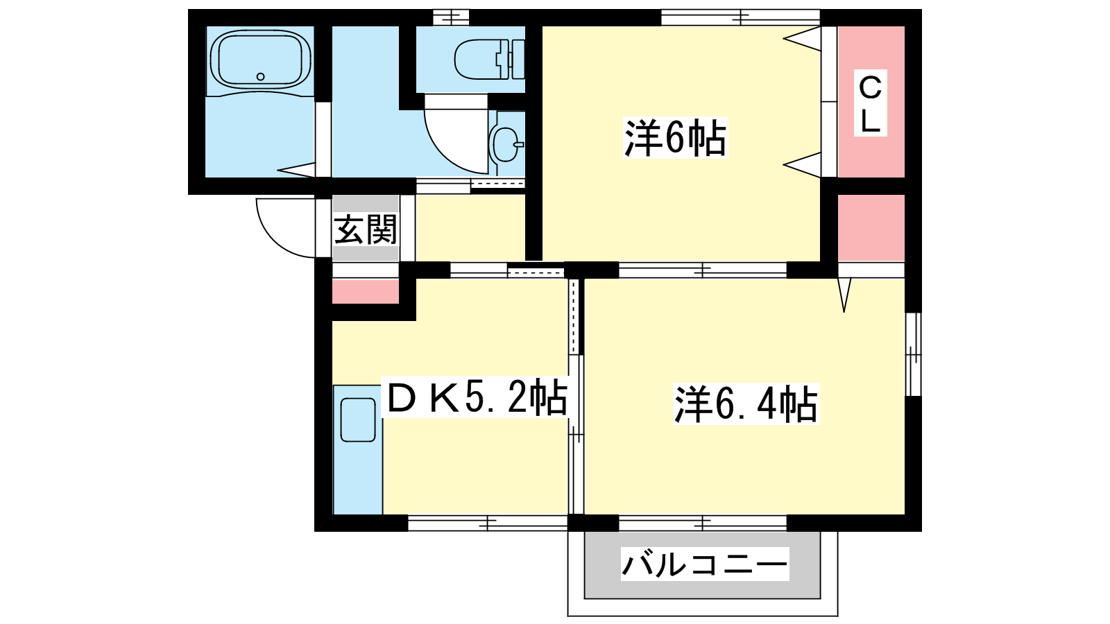 - DK5.2帖、洋室6.4帖、洋室6帖