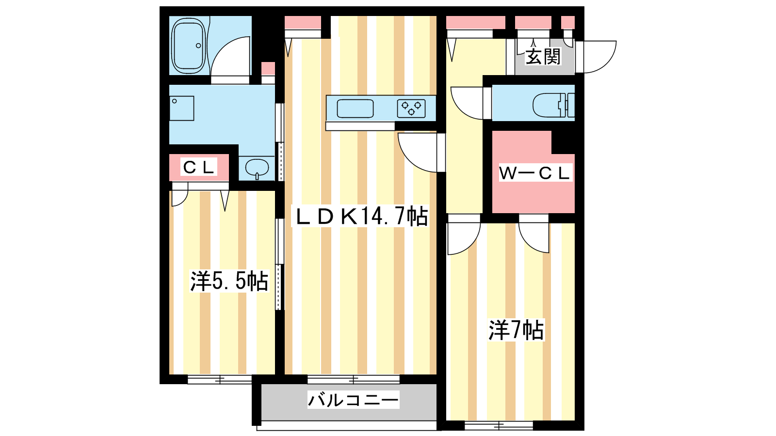 - LDK14.7帖、洋室7帖、洋室5.5帖