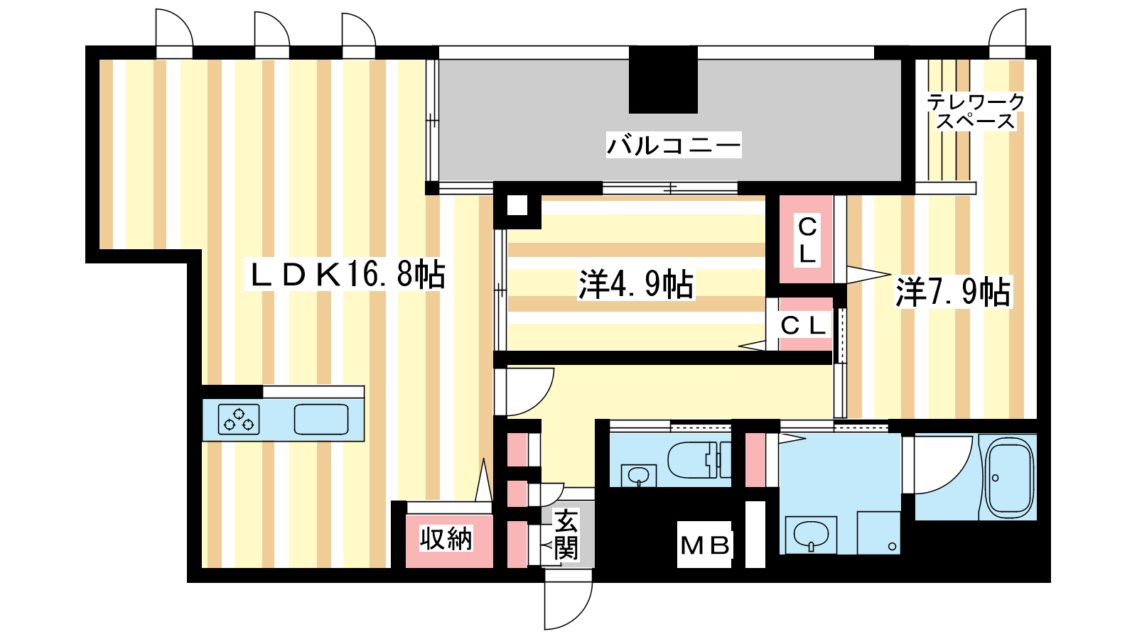 - LDK16.8帖、洋室7.9帖、洋室4.9帖