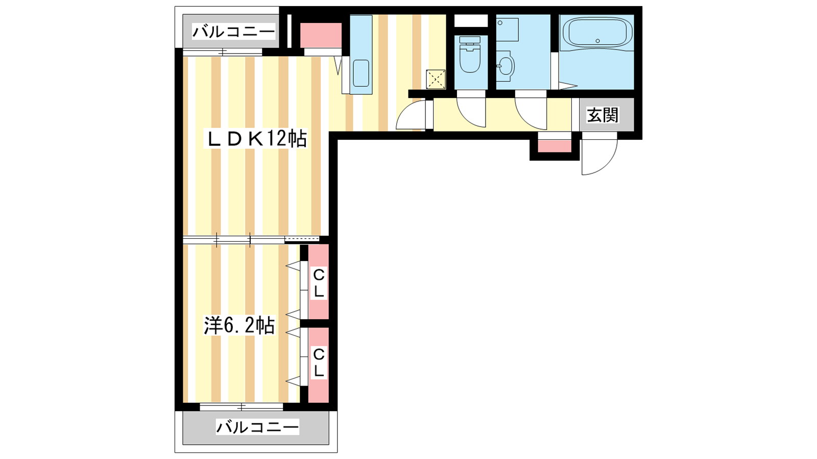 - LDK12帖、洋室6.2帖