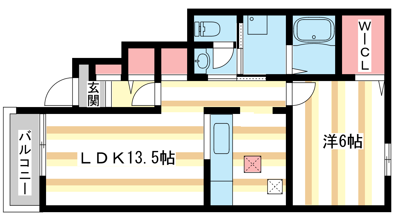 - LDK13.5帖、洋室6帖