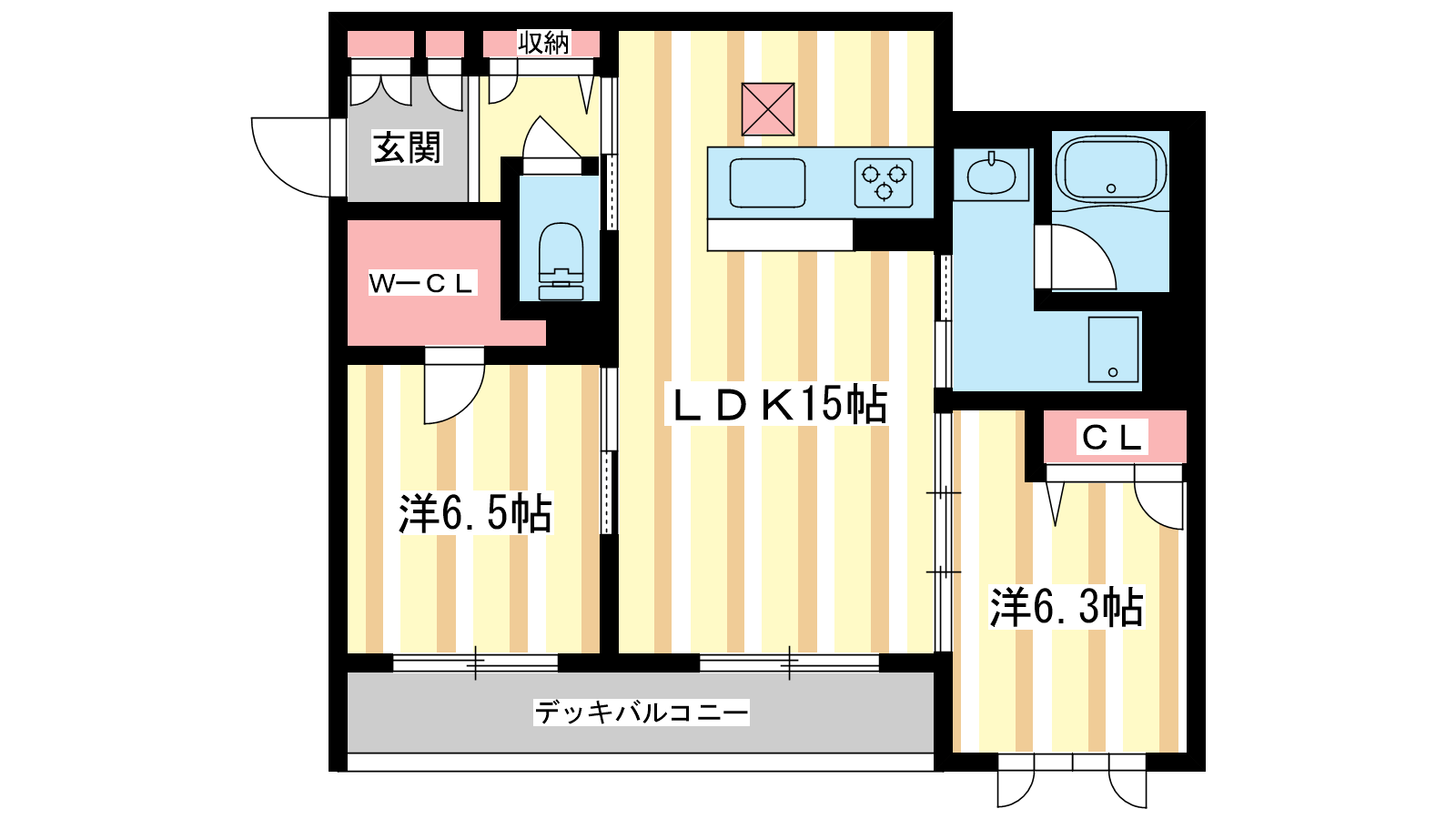 - LDK15帖、洋室6.5帖、洋室6.3帖