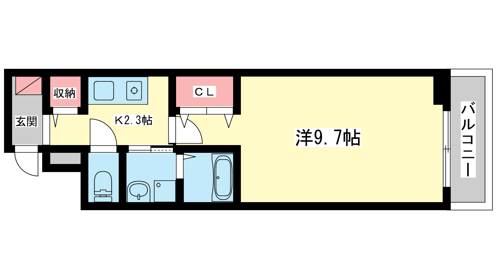 - 洋室9.7帖、K2.3帖
