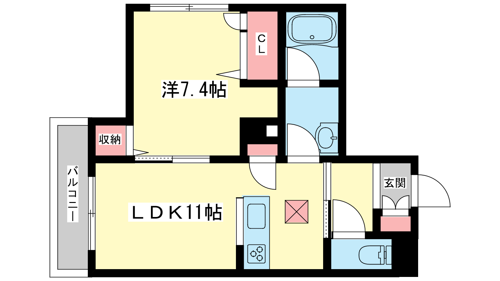 - LDK11帖、洋室7.4帖