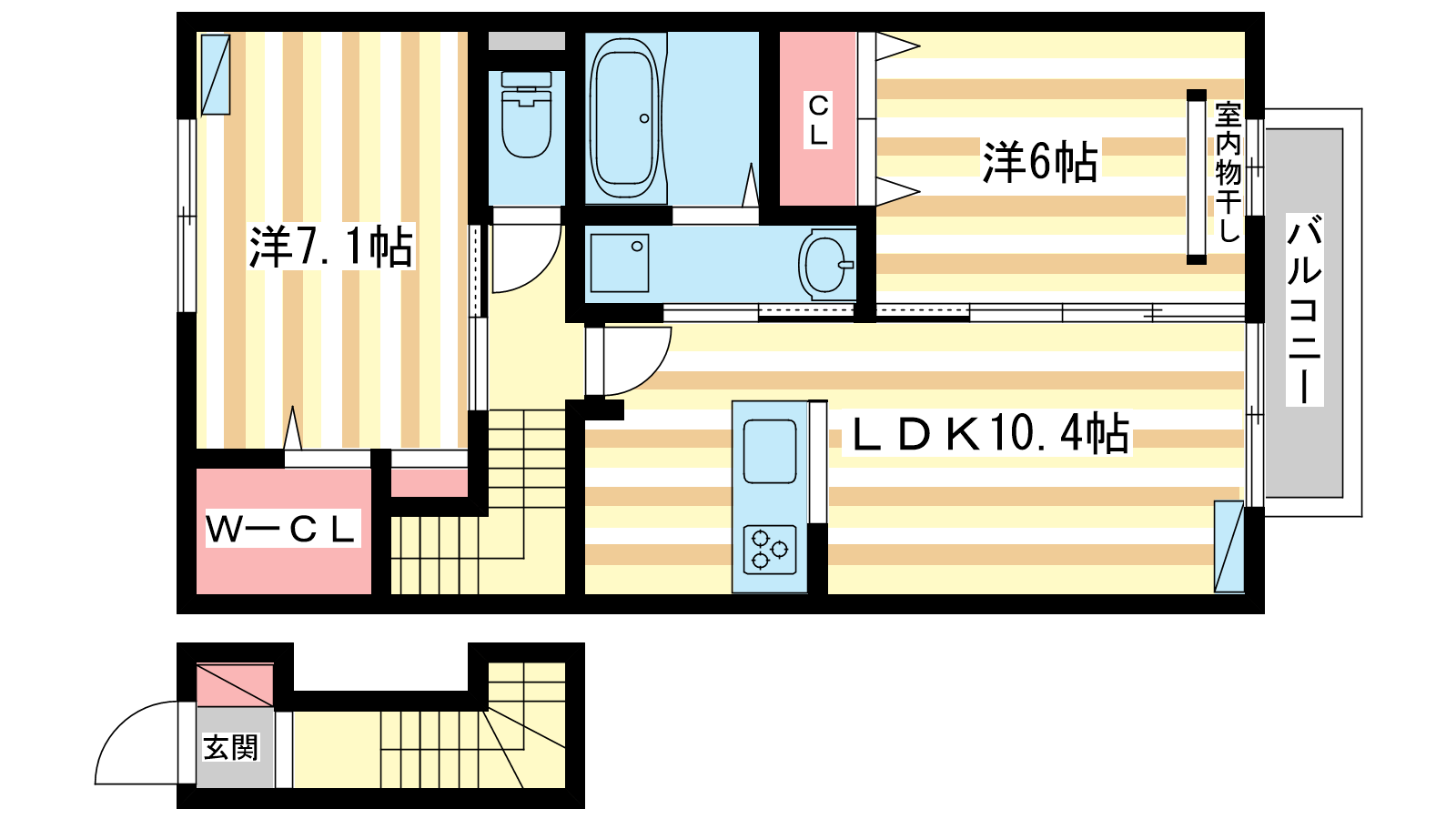 - LDK10.4帖、洋室7.1帖、洋室6帖