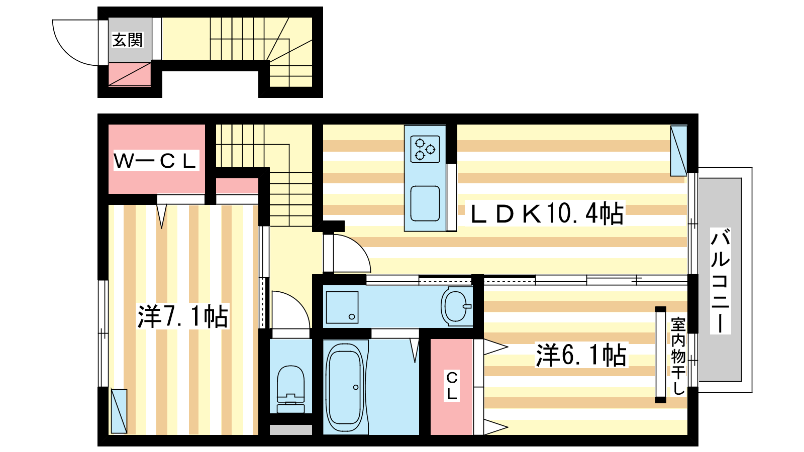 - LDK10.4帖、洋室7.1帖、洋室6.1帖