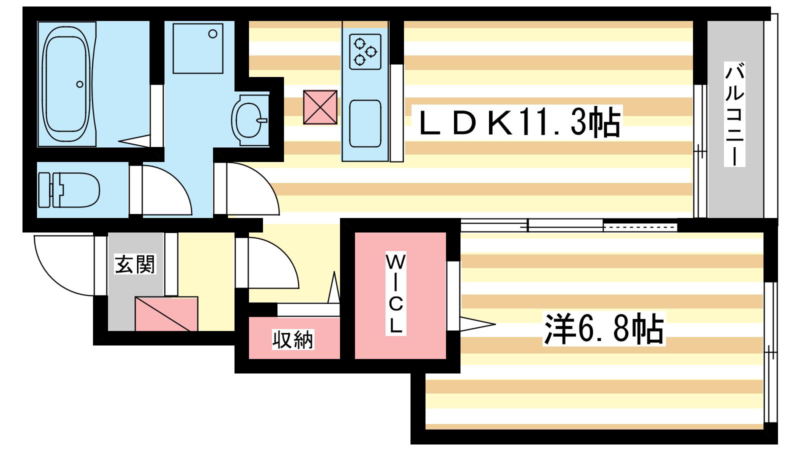 - LDK11.3帖、洋室6.8帖
