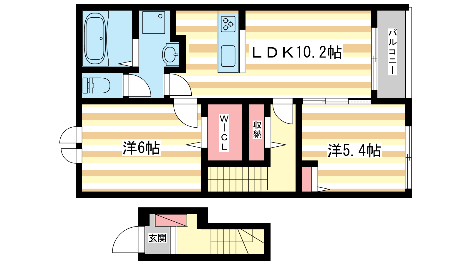- LDK10.2帖、洋室6帖、洋室5.4帖