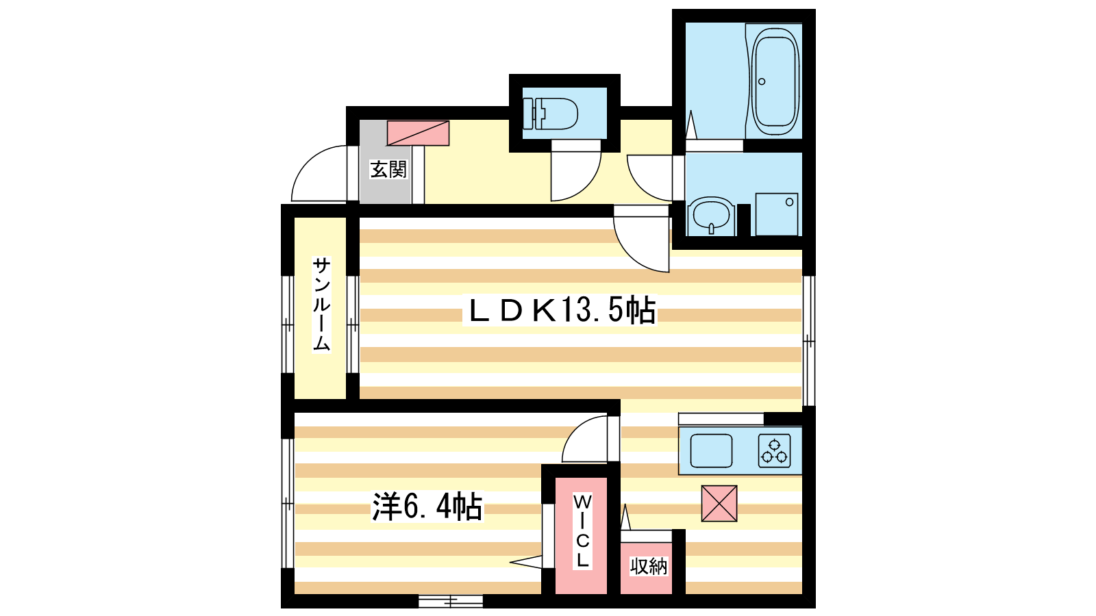 - LDK13.5帖、洋室6.4帖