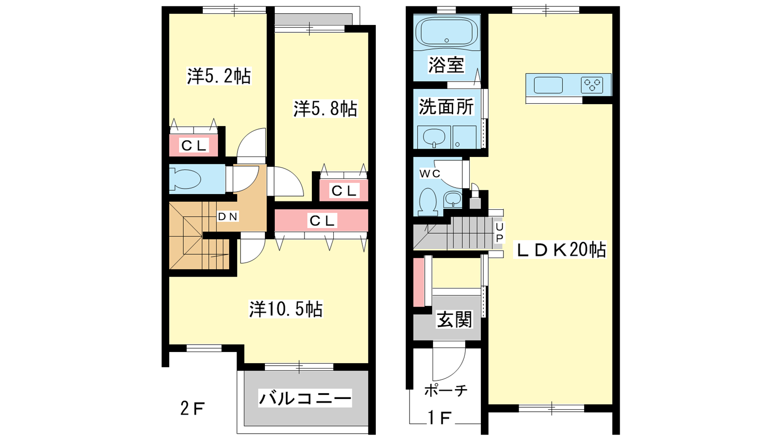 - 洋室10.5帖、洋室5.8帖、洋室6.2帖、LDK20帖