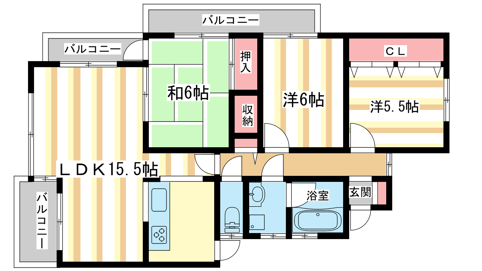 - 和室6帖、洋室6帖、洋室6帖、LDK17帖