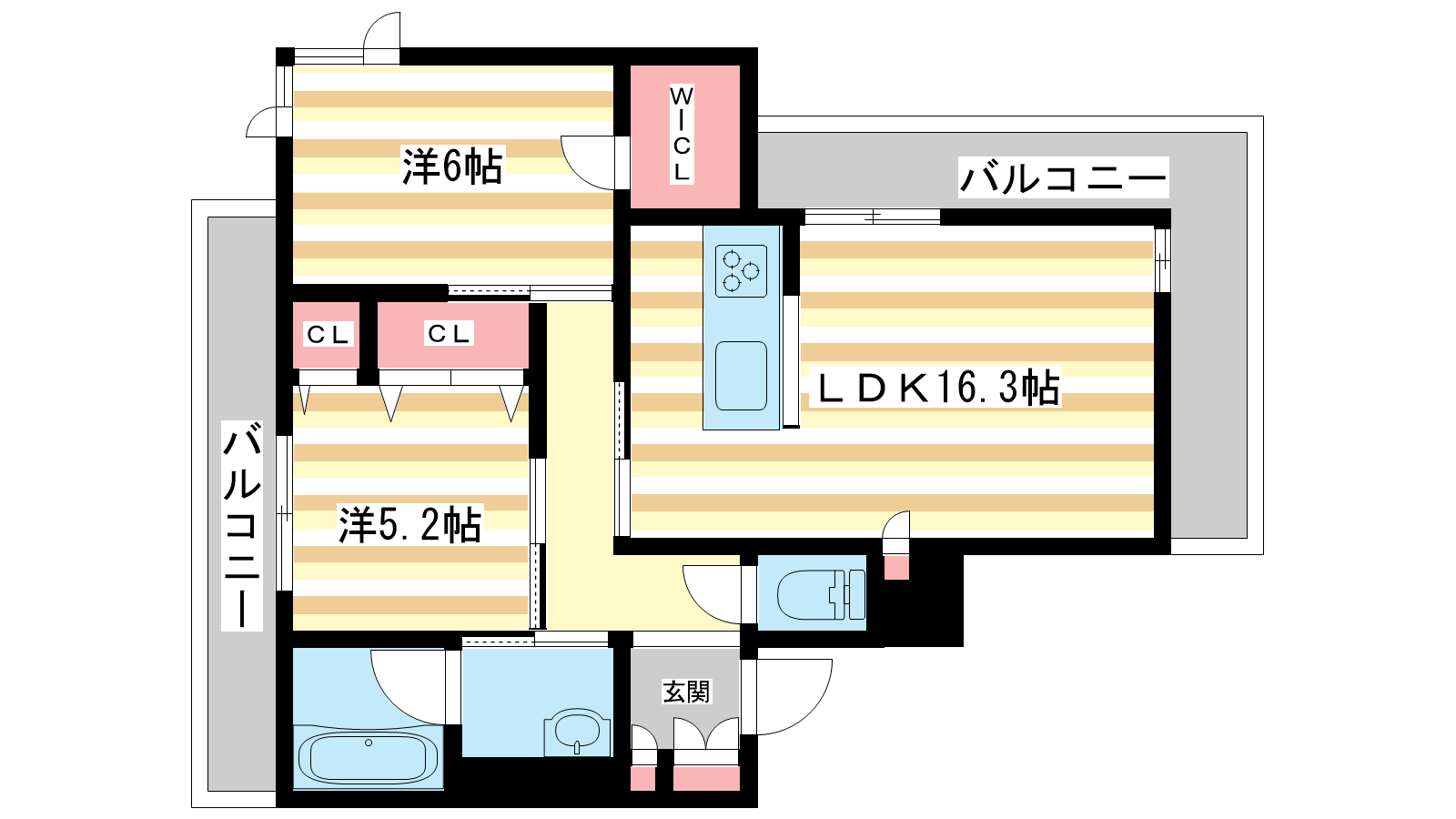 - LDK16.3帖、洋室6.3帖、洋室5.4帖
