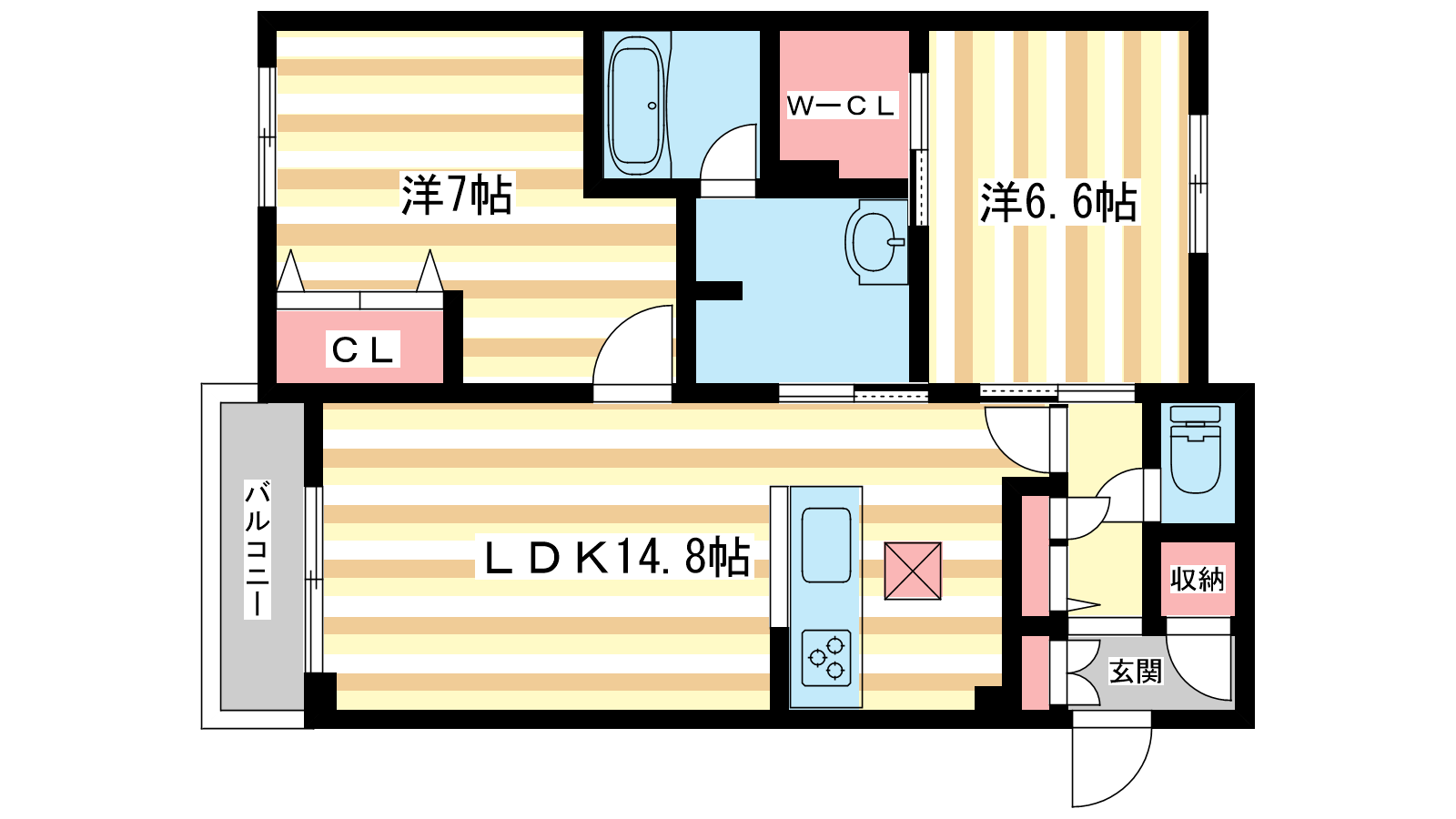- LDK14.8帖、洋室7帖、洋室6.8帖