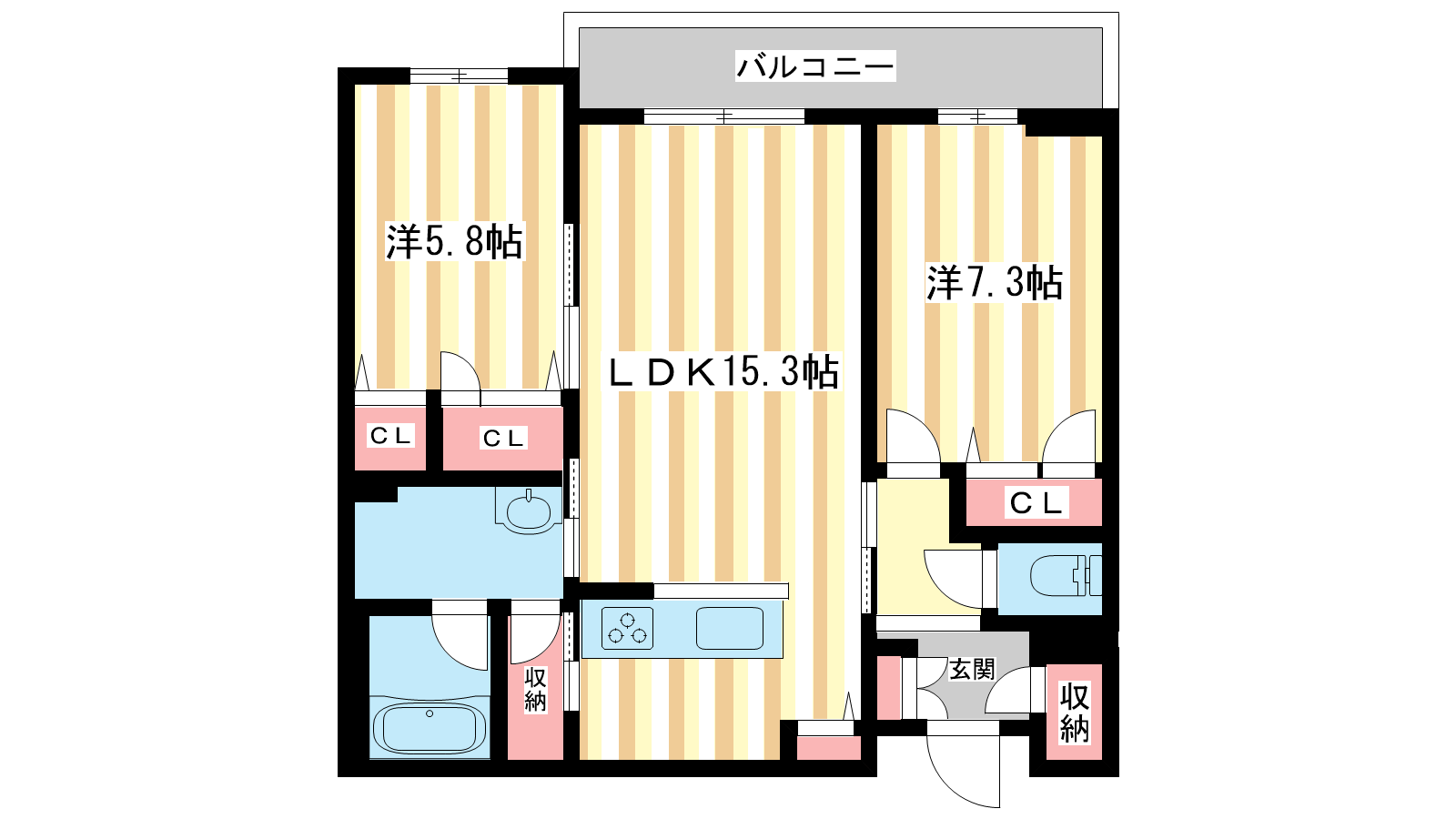 - LDK15.3帖、洋室7.3帖、洋室5.8帖