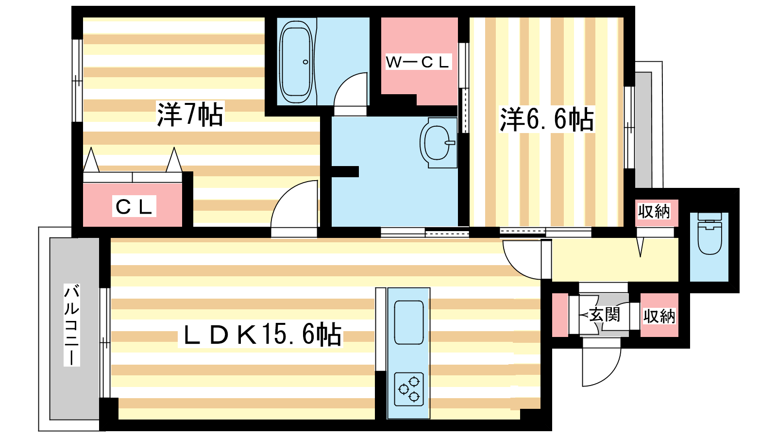 - LDK15.6帖、洋室7帖、洋室6.6帖