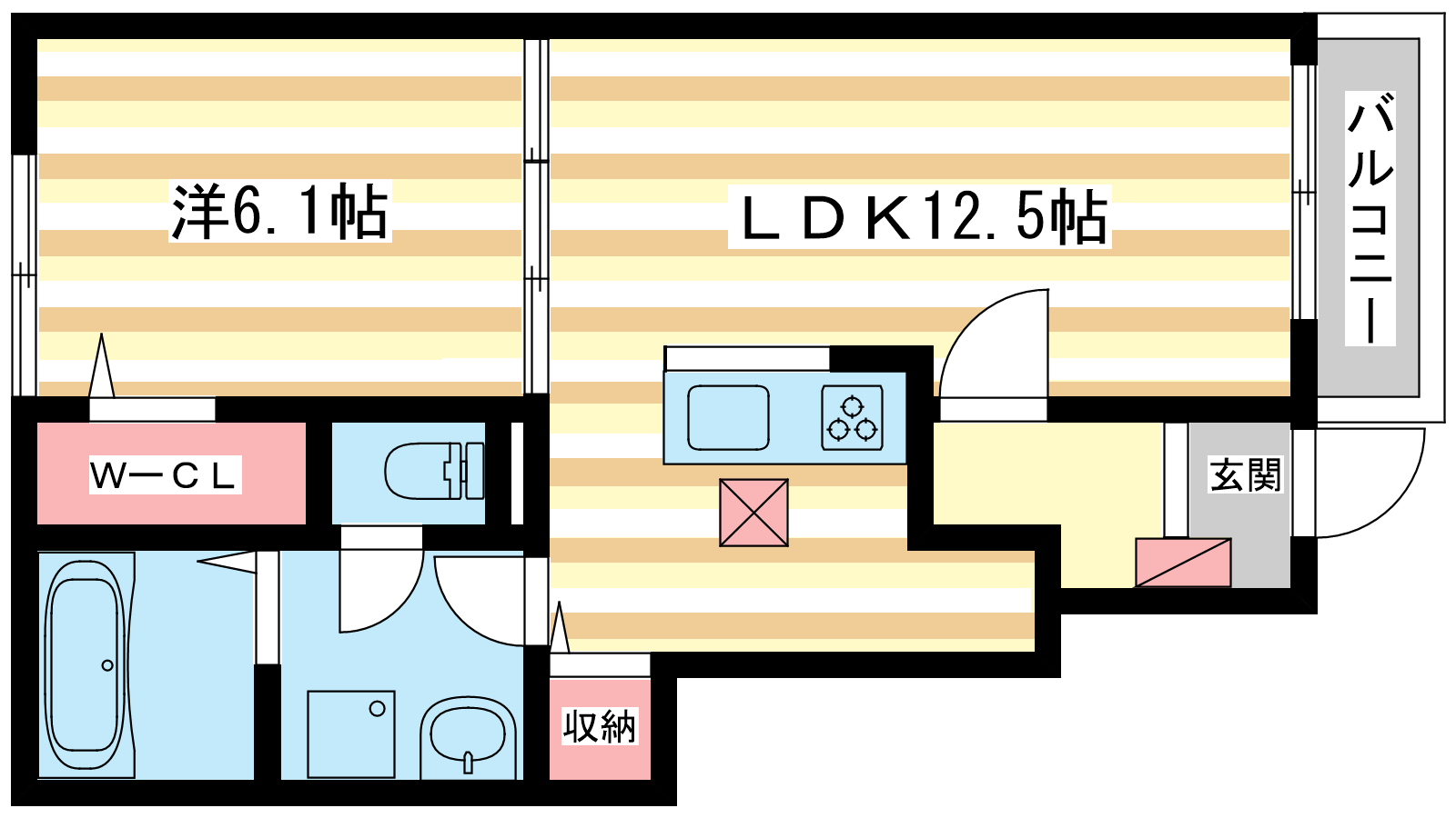 - LDK12.5帖、洋室6.1帖