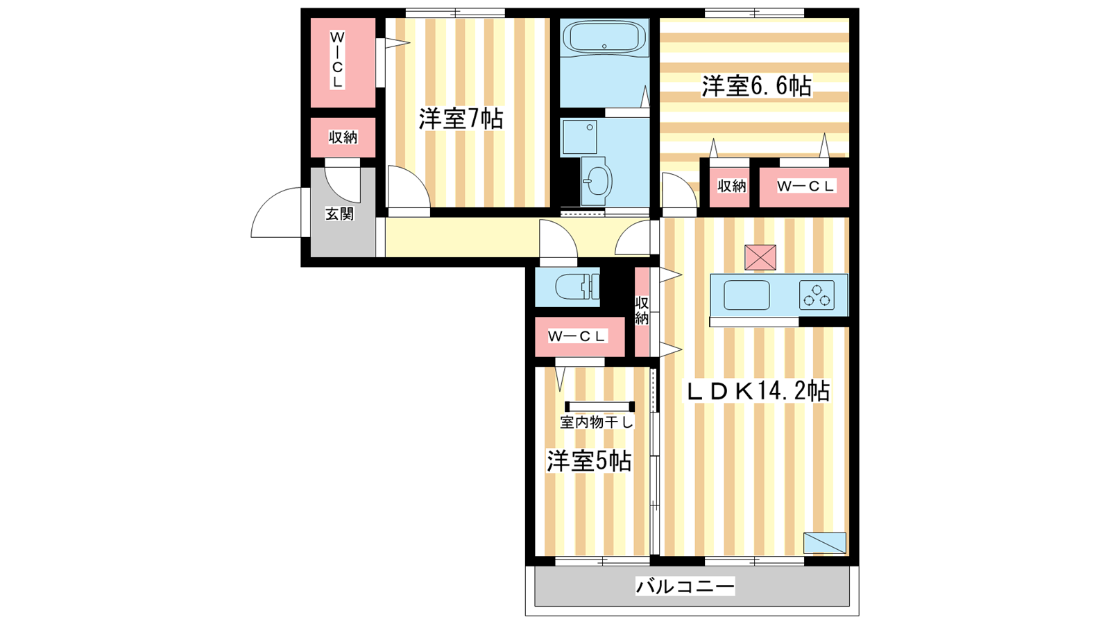 - LDK14.2帖、洋室7帖、洋室6.6帖、洋室5帖
