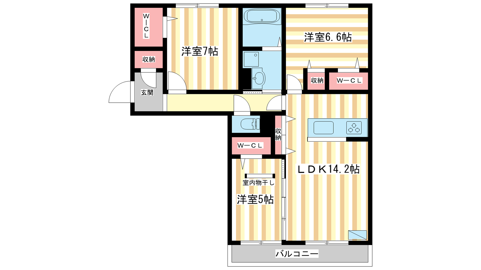 - LDK14.2帖、洋室7帖、洋室6.6帖、洋室5帖